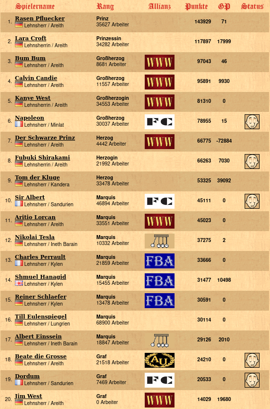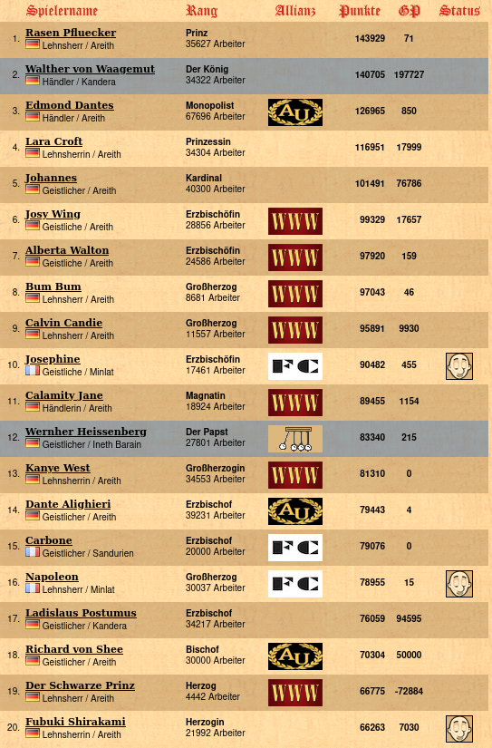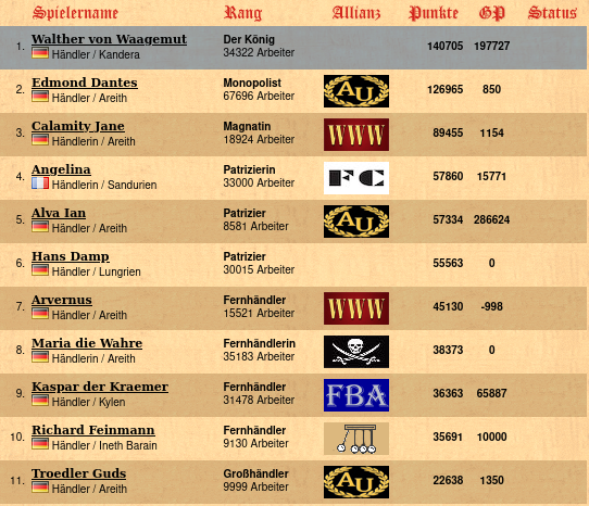kleinste Allianz: die Korsaren von Maria die Wahre (1 Mitglied) , die Korsaren von Maria die Wahre (1 Mitglied)