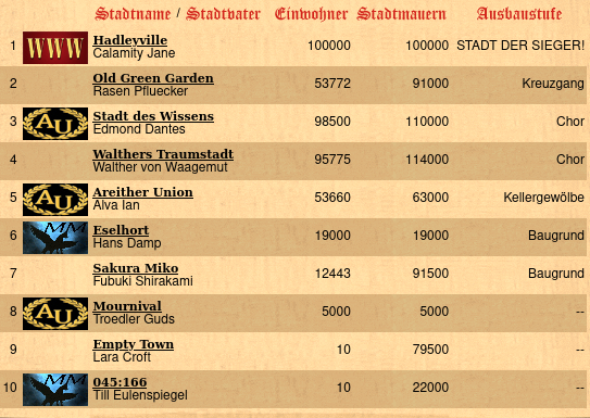 Von Anbeginn an wurde die Sommerrunde von den 3 Massenallys “Wild Wild West”, “Areither Union” und “Freie Bürger Aramoons” beherrscht und es bot sich einiges an Konfliktpotential. Die aufgebaute Spannung entlud sich dann schlagartig, als innerhalb kürzester Zeit die ersten beiden Städte gegründet wurden und es die jungen Recken der FBA doch tatsächlich wagten ihre Stadt noch etwas früher als die alteingesessene Gruppe WWW zu gründen. In gewohnter Manier wurden also wieder unangekündigte und heimliche Angriffe gegen die Konkurrenz gestartet, überraschenderweise folgte diese Runde sogar eine Kriegserklärung! Nach etlichen Tagen Krieg konnte die “Freie Hansestadt Aramoon” endlich erobert werden und wurde prompt zur “Geisterstadt” (Amüsantes Detail am Rande: Die “Geisterstadt” hatte trotz allem längere Zeit mehr Einwohner als “Hadleyville”). Da dieser Triumph wohl noch nicht ausreichte wurden in weiterer Folge noch die meisten Allianzmitglieder der freien Bürger in Grund und Boden gestampft, die Hälfte der FBA verabschiedete sich daraufhin von Aramoon und ward nicht mehr gesehen.