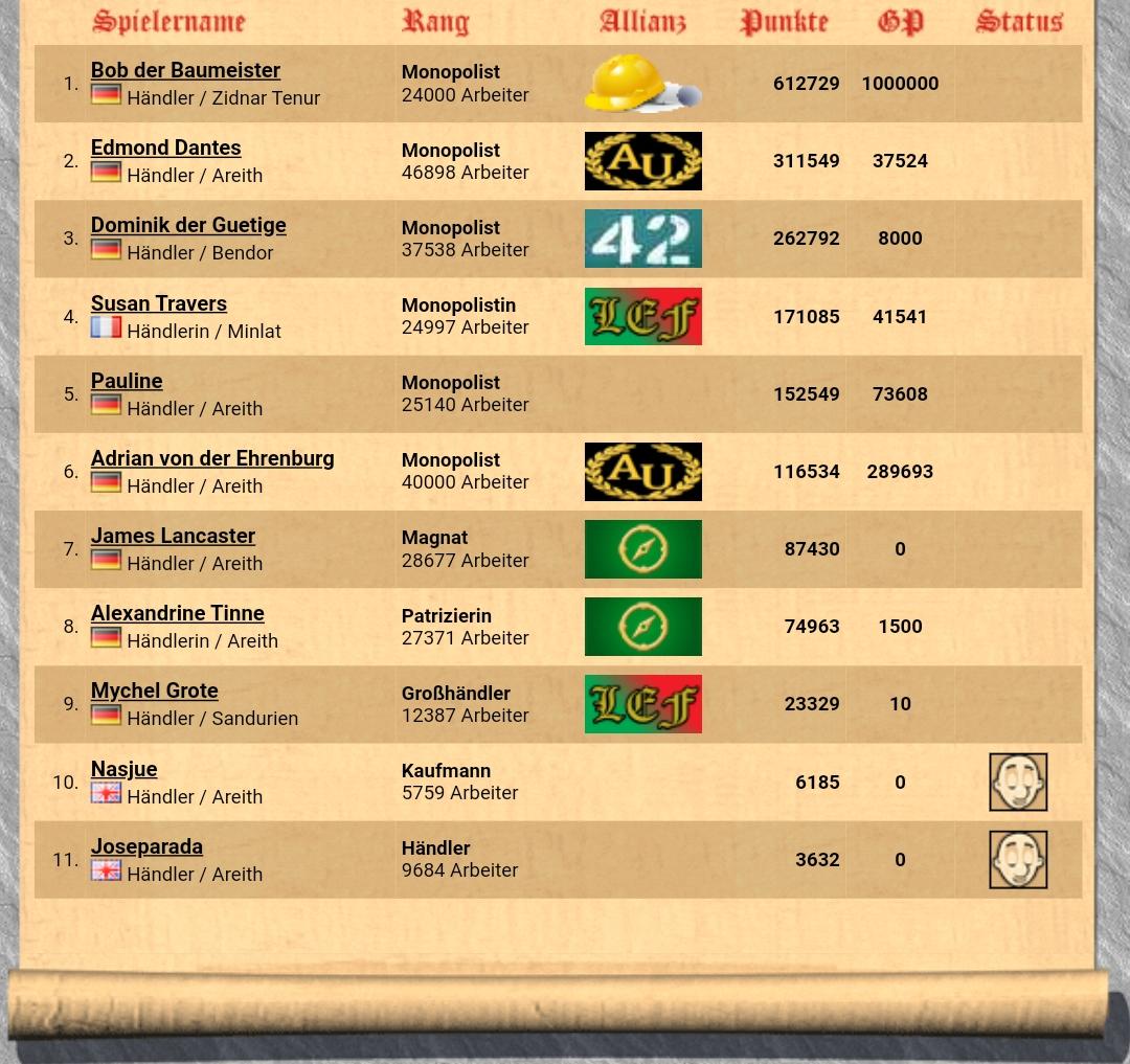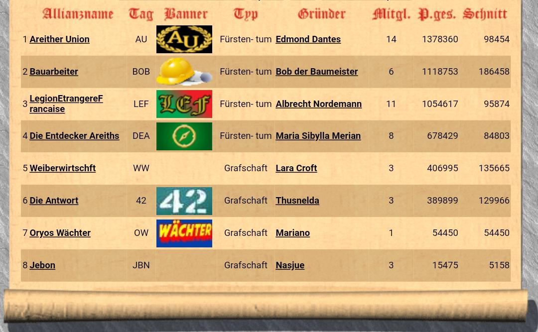 größte Allianz: Areither Union von Edmond Dantes (14 Mitglieder)
