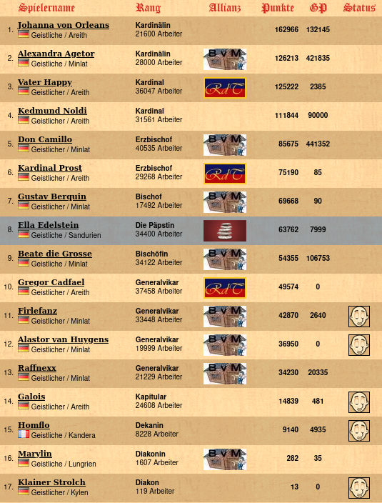 Oder zumindest haben sie es versucht. Zu einem Angriff ist es, dank erfolgreicher Erpressung, nicht gekommen. RdT hat der Stadtherrin, Moise Enda (J4F), den Verzicht auf einen Fackelzug durch die Stadt versprochen, sollte selbige 20 000 Einwohner verlieren und die nächste Baustufe der Kathedrale angemessen verzögern. J4F hat eingelenkt.